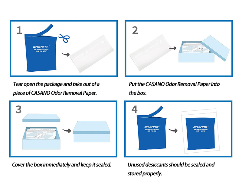 CASANO Odor Removal Paper can be used in: gift box liners, leather goods, textiles, shoes, refrigerators, wardrobes, bathroom, automobiles, and other products.